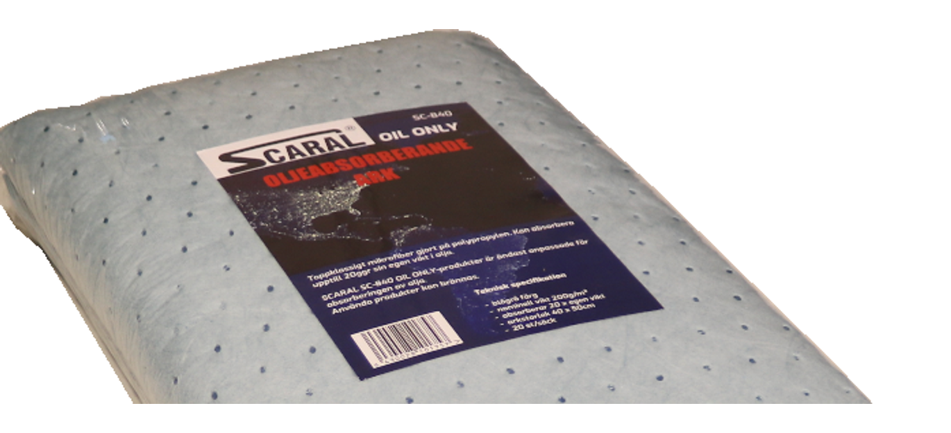 Oljeabsorberingsduk Oil Only Effektiv absorberingsduk tillverkad av polypropen med mikrofiber av högsta kvalitet. Absorberar och binder upp till 20 gånger sin egen vikt i olja. Endast för oljeupptagning – absorberar inte vatten. • Vikt: 200 g • Färg: blågrå • Arkstorlek: 40 × 50 cm • Förpackning: 20 st/säck