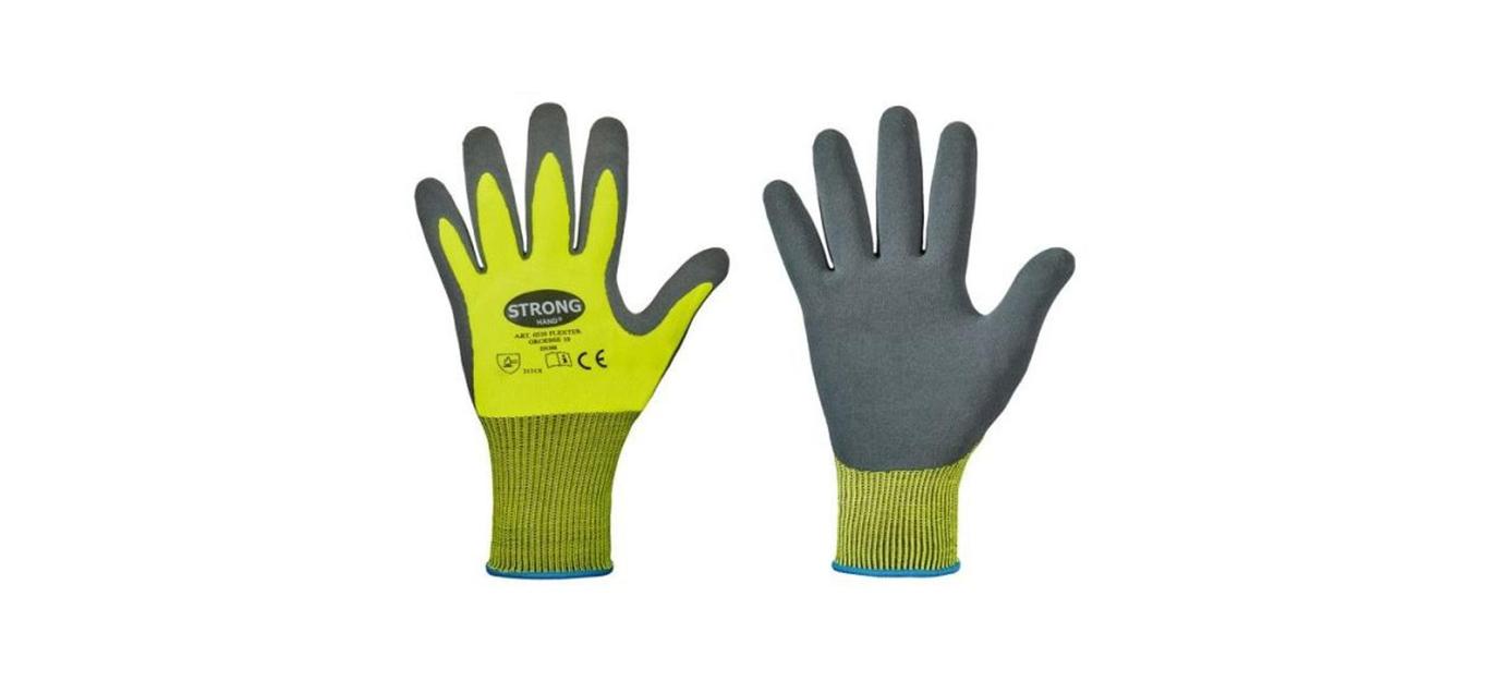 Latexbelagd stickad handske, polyesterbaksida 13G. Storlekar 7-11.